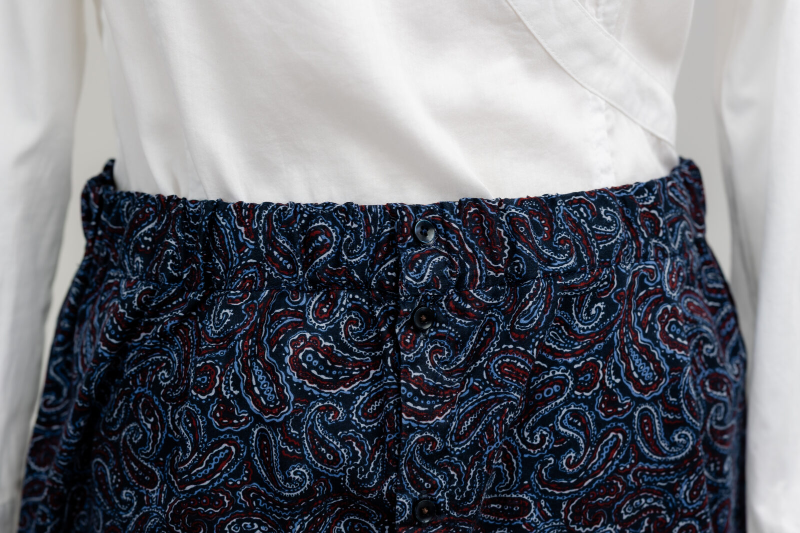 Szukasz spódnicy, która jest uniwersalna, wygodna i ma w sobie coś intrygującego? Ten model łączy najlepsze cechy klasycznej elegancji i wakacyjnej swobody. Granatowa baza pasuje do każdej bluzki, gumka w pasie zapewnia idealny komfort, a wzór w łezki (paisley) jest dyskretny, ale dodaje spódnicy głębi i historii.