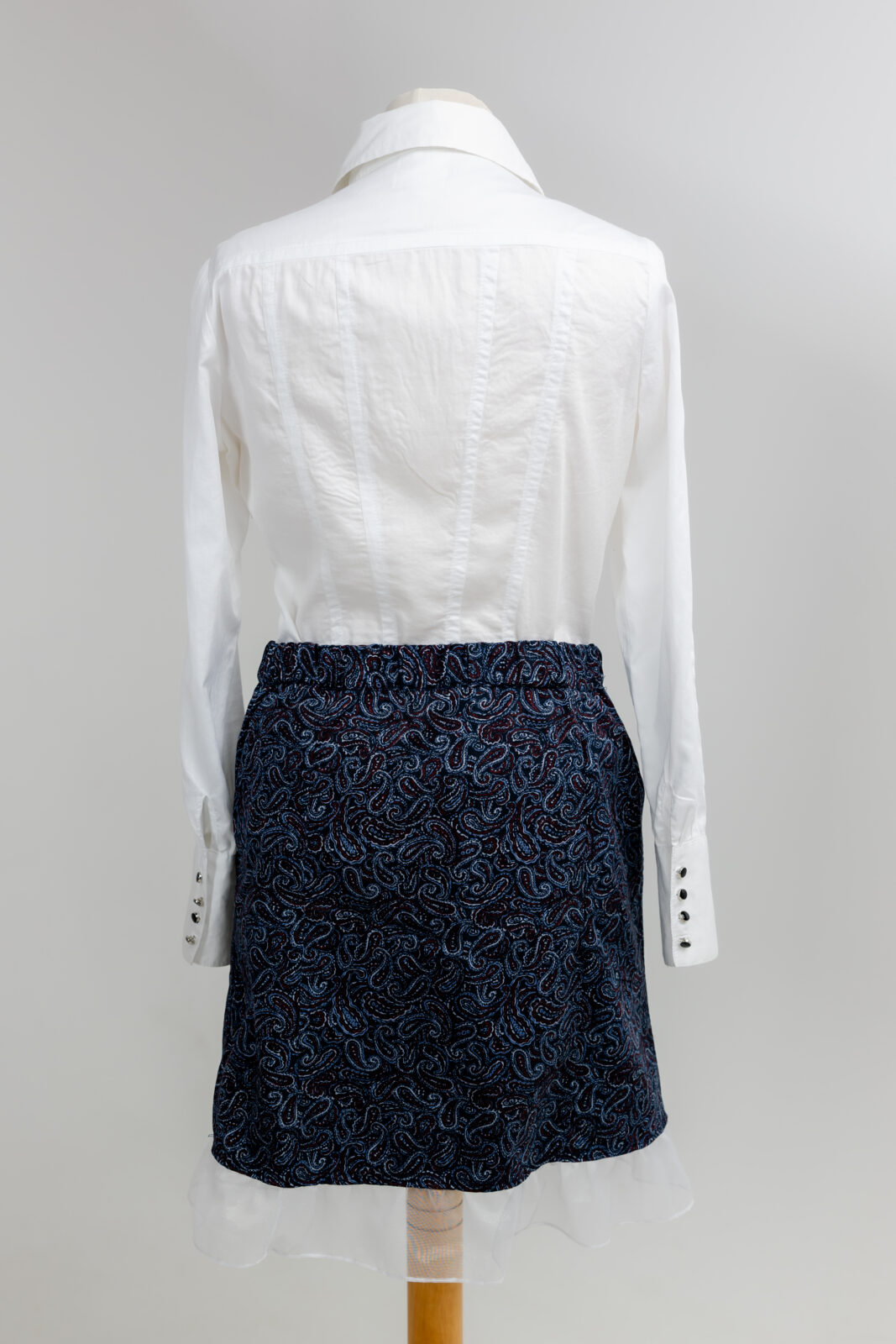 Odmieniam z wyczuciem: Skupiłam się na trwałości i elastyczności gumki, aby spódnica idealnie leżała, oraz na dopracowaniu falbanki, by zachowała swoją lekkość i sprężystość.
