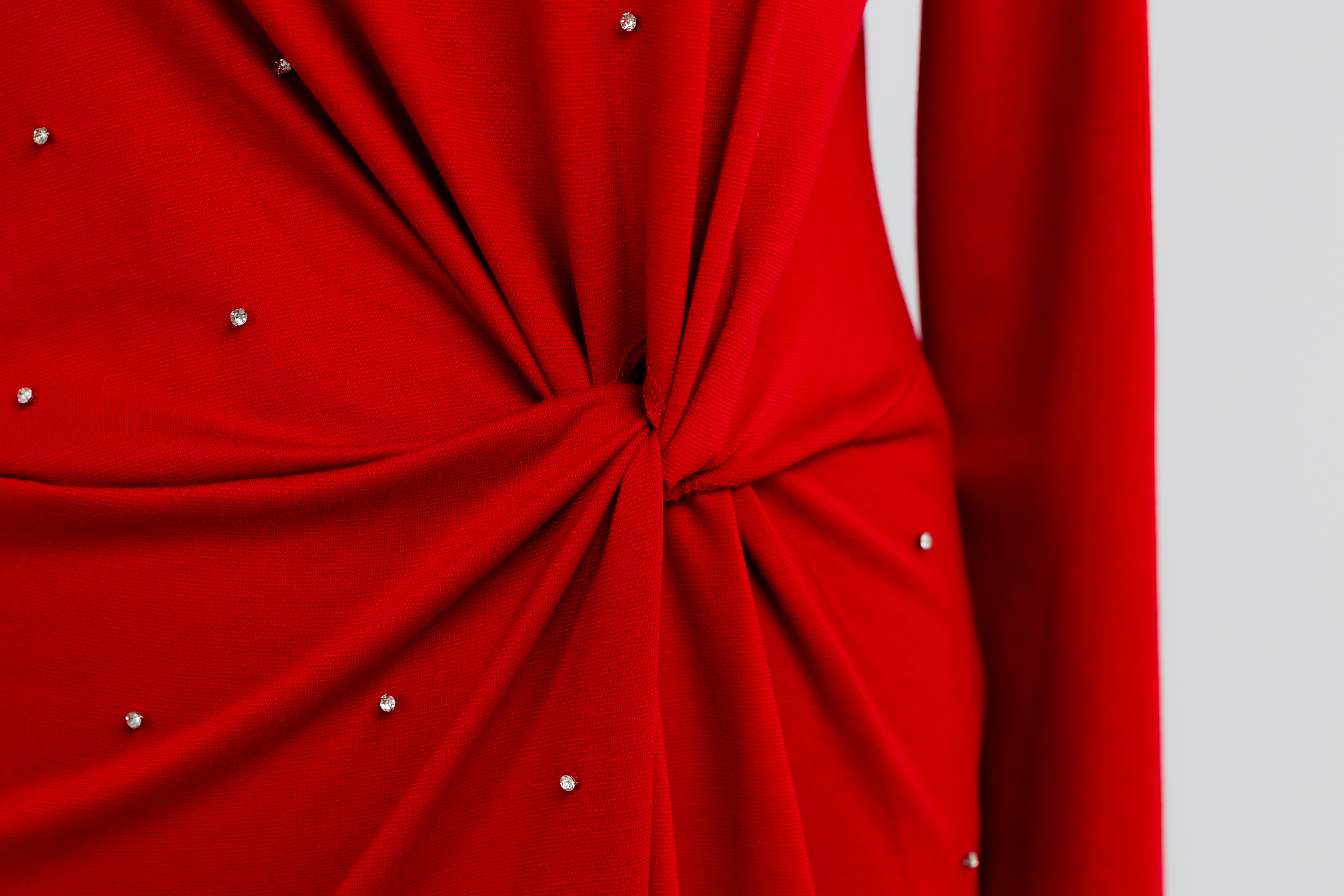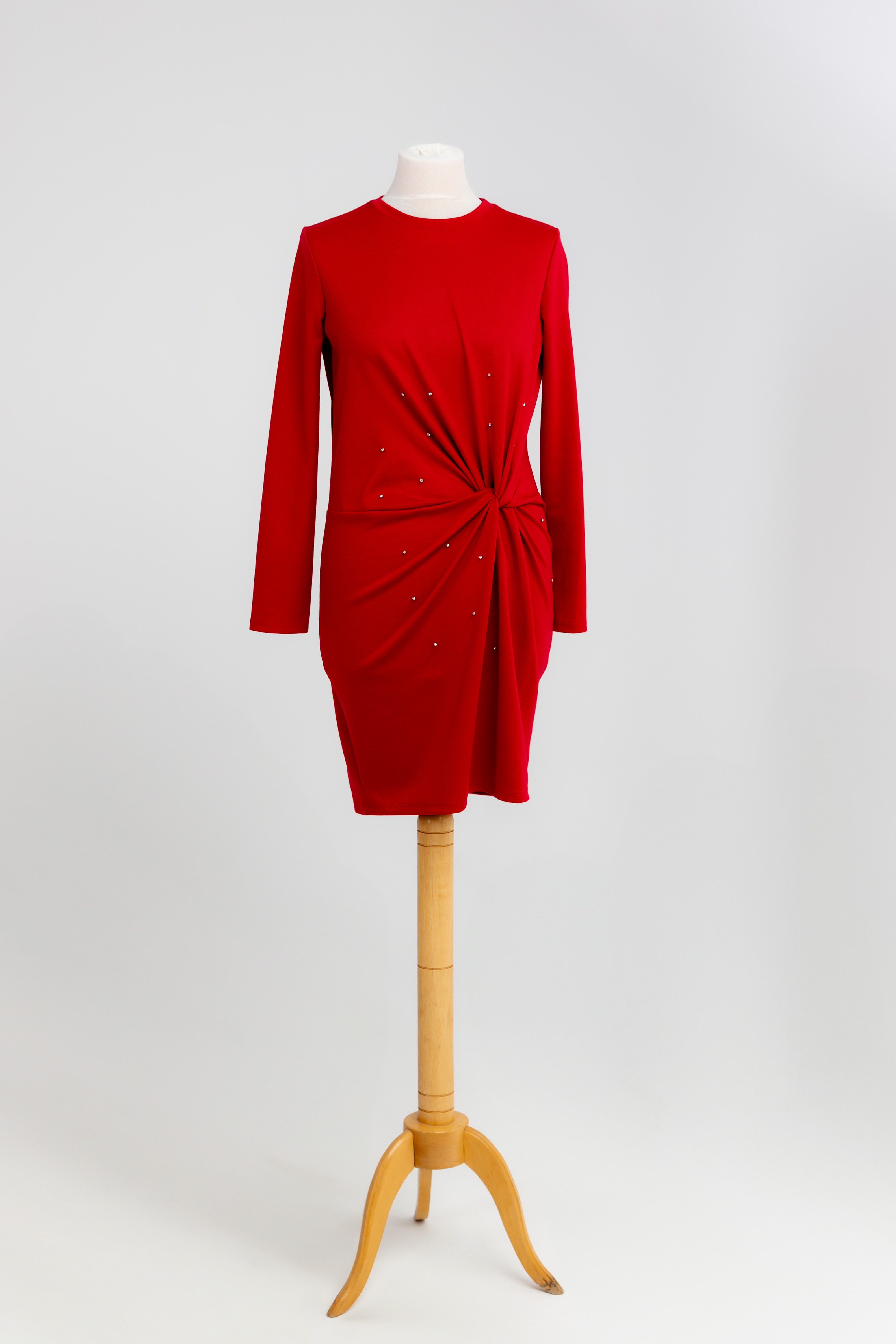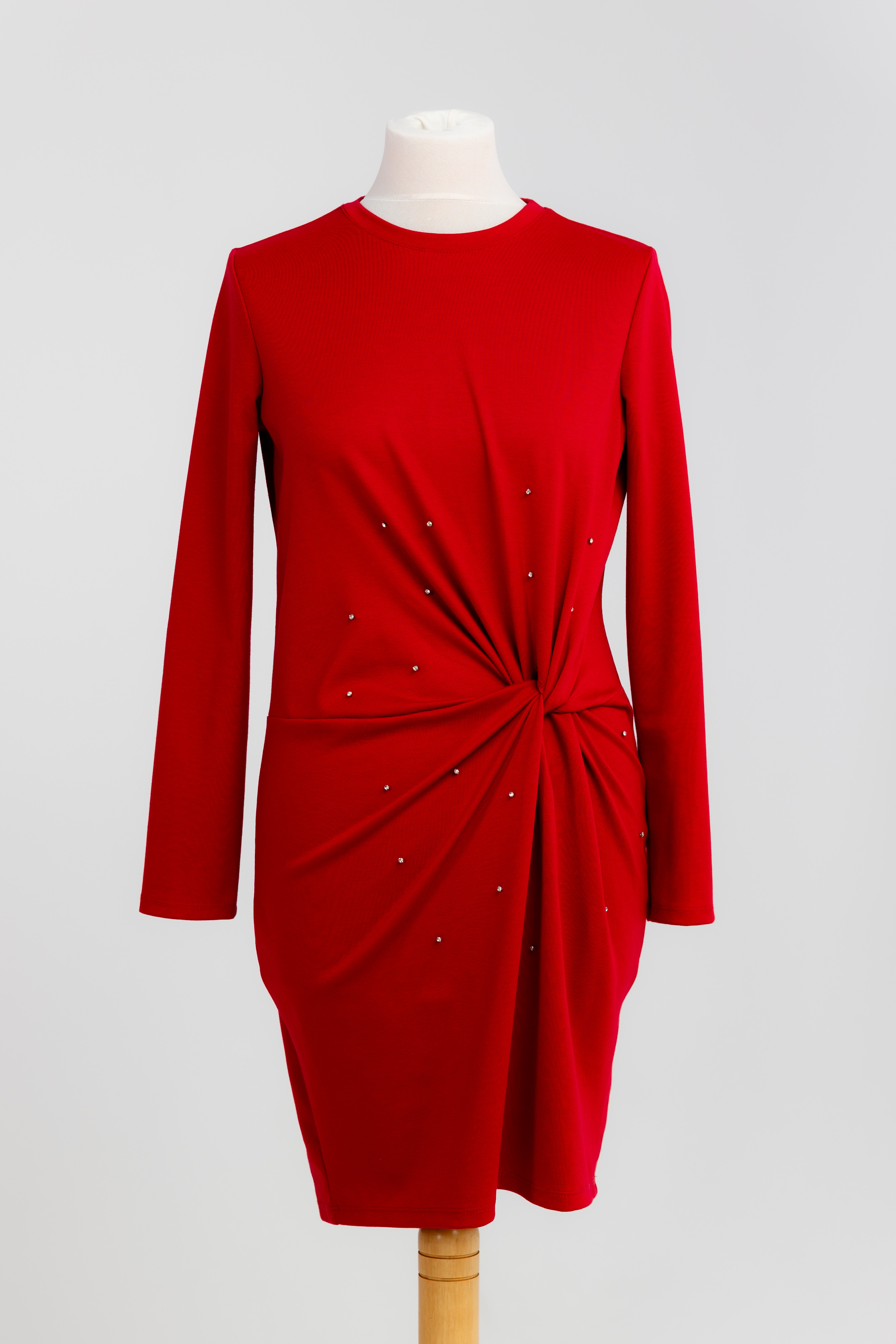 Sukienka – Czerwona z kryształkami, długi rękaw