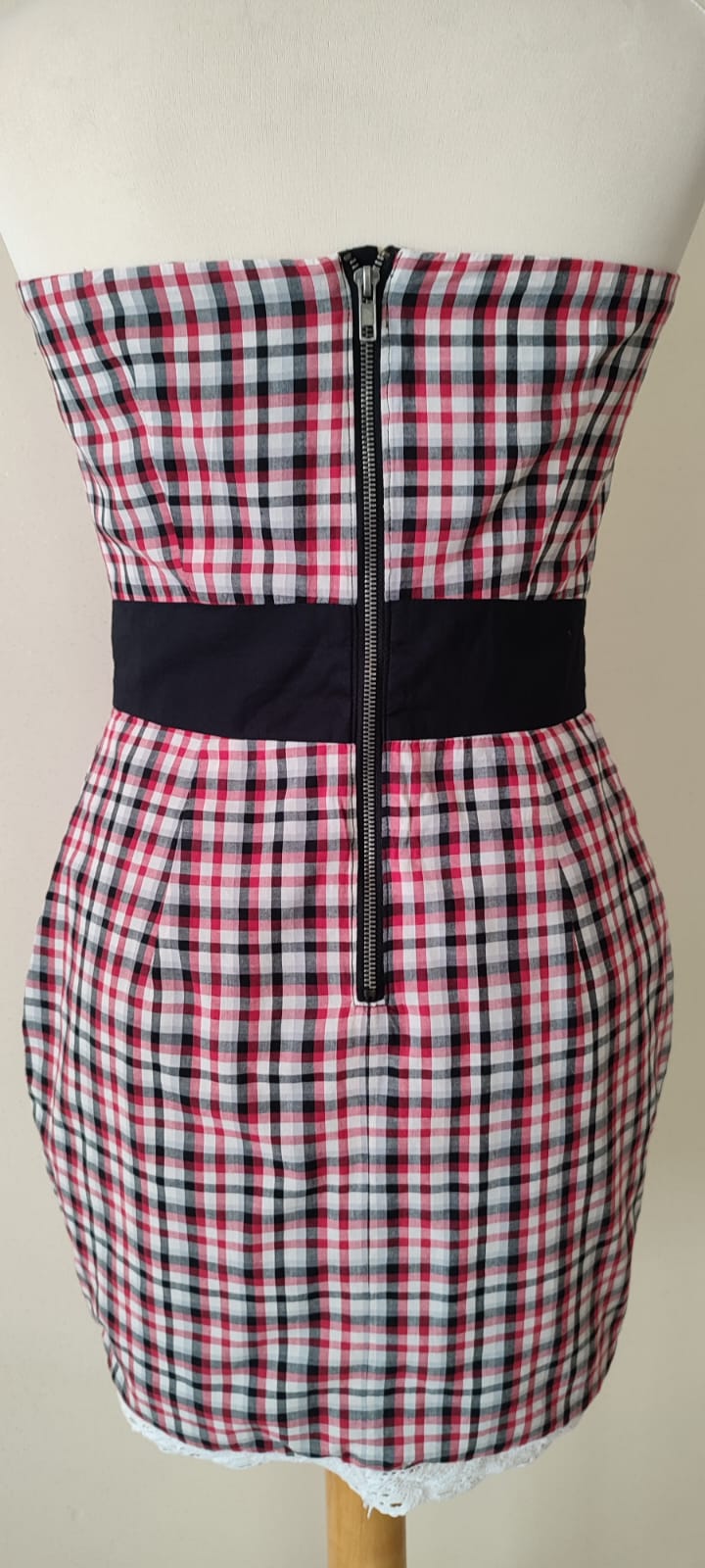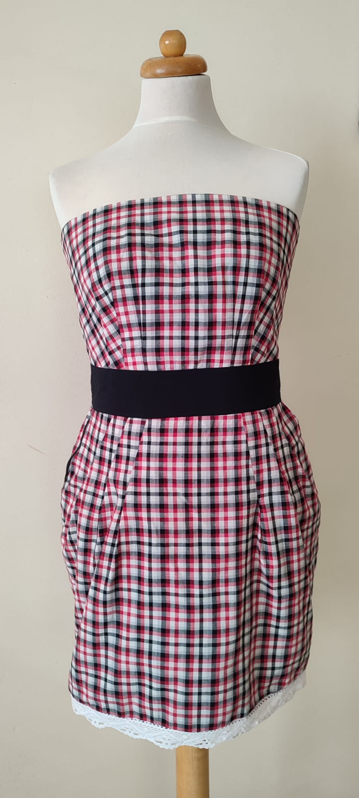 Ta sukienka to kwintesencja letniej swobody i kobiecej elegancji. Jest stworzona dla Ciebie, jeśli chcesz wyglądać szykownie nawet podczas najwyższych temperatur, jednocześnie podkreślając atuty swojej sylwetki. Klasyczna kratka sprawia, że fason jest ponadczasowy, a brak ramiączek dodaje mu lekkości i nowoczesnego charakteru.