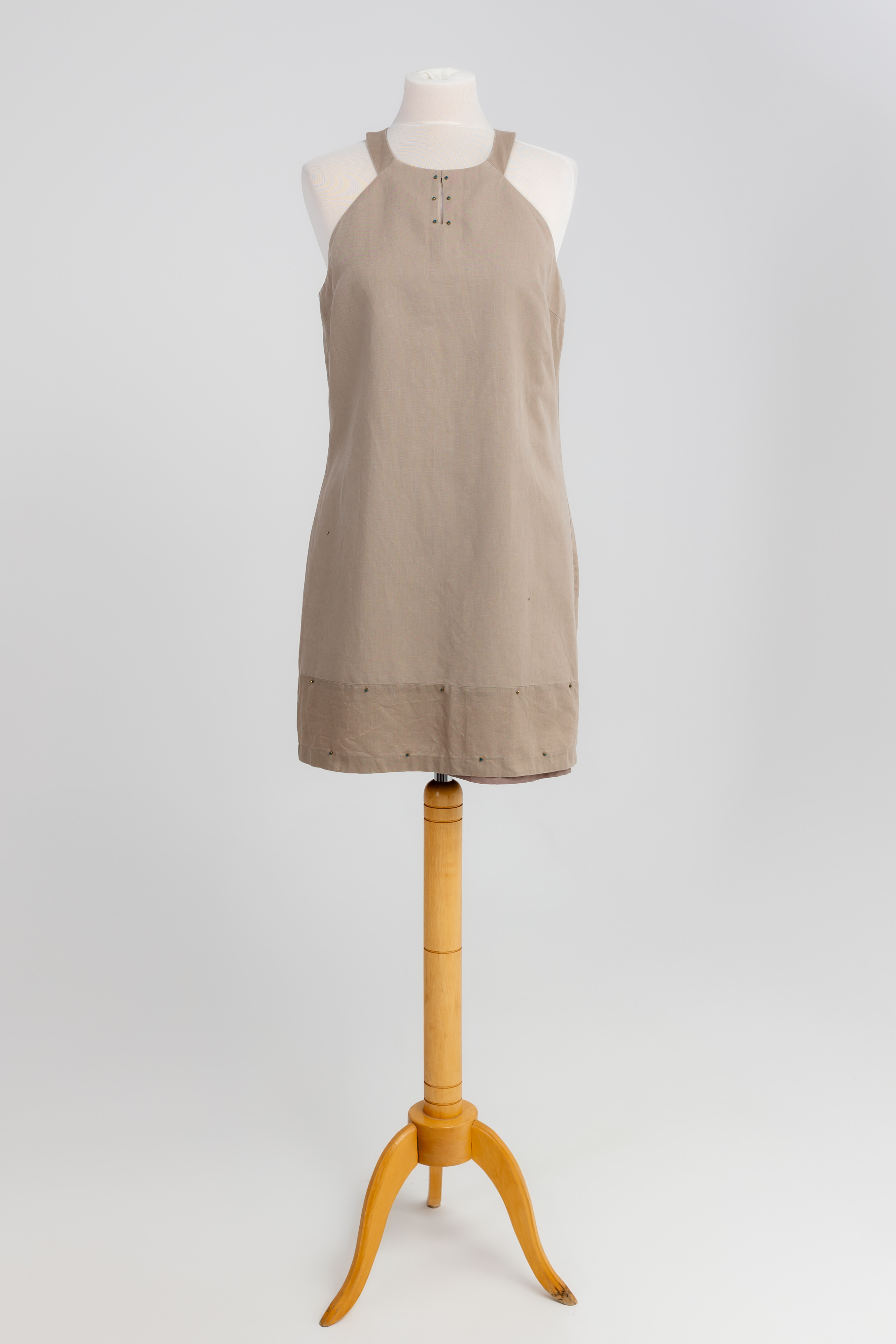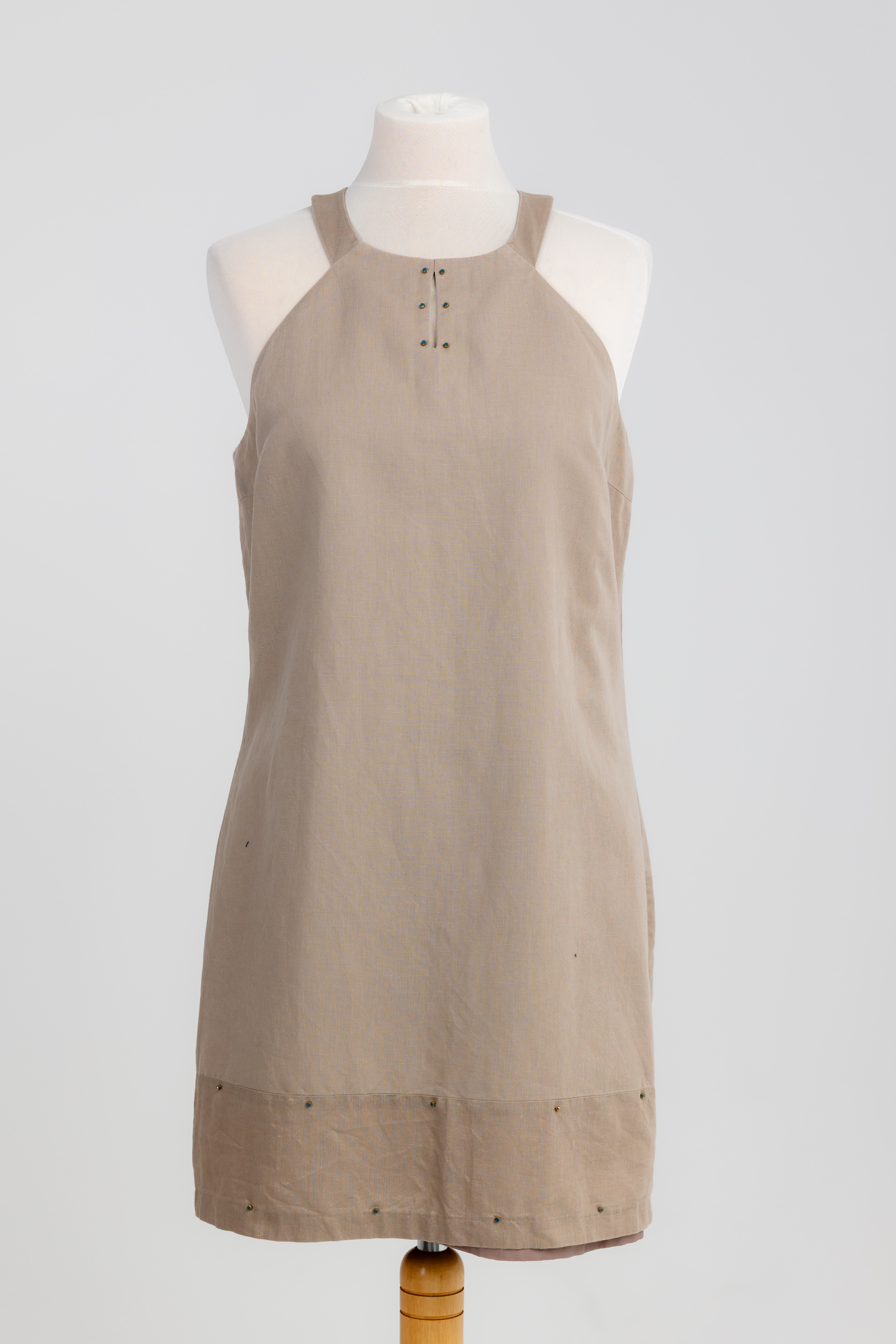Naturalny luksus i maksymalny komfort. Ta sukienka lniana w szlachetnym kolorze cappuccino to esencja minimalistycznej elegancji. Materiał zapewnia idealną cyrkulację powietrza, a fason na ramiączkach podkreśla lekkość i jest idealny na upalne dni. Odnowiona i dopracowana – zyskujesz ekologiczną klasykę, która nigdy nie wyjdzie z mody.