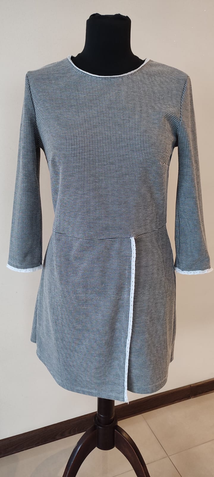 Masz dość wybierania między wygodą a formalnością? Ten unikatowy fason Sukienko-Spodenek to genialne rozwiązanie dla kobiet, które cenią subtelne detale i swobodę ruchu. Drobna, biało-czarna kratka (np. pepitka) jest ponadczasowa, elegancka i wygląda równie dobrze w biurze, jak i na weekendowym wypadzie. Akcent koronki dodaje całości wyrafinowanego, intrygującego charakteru.