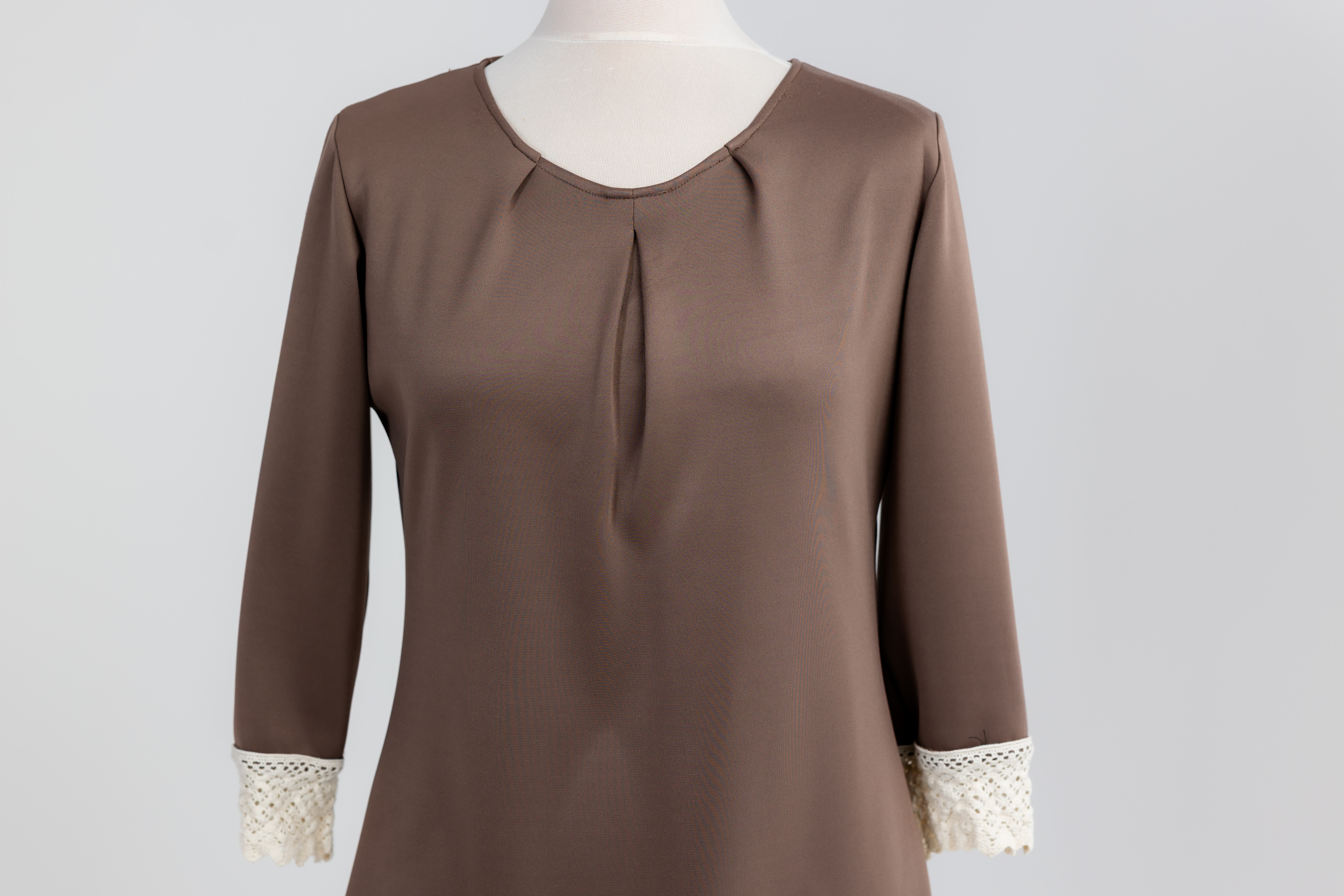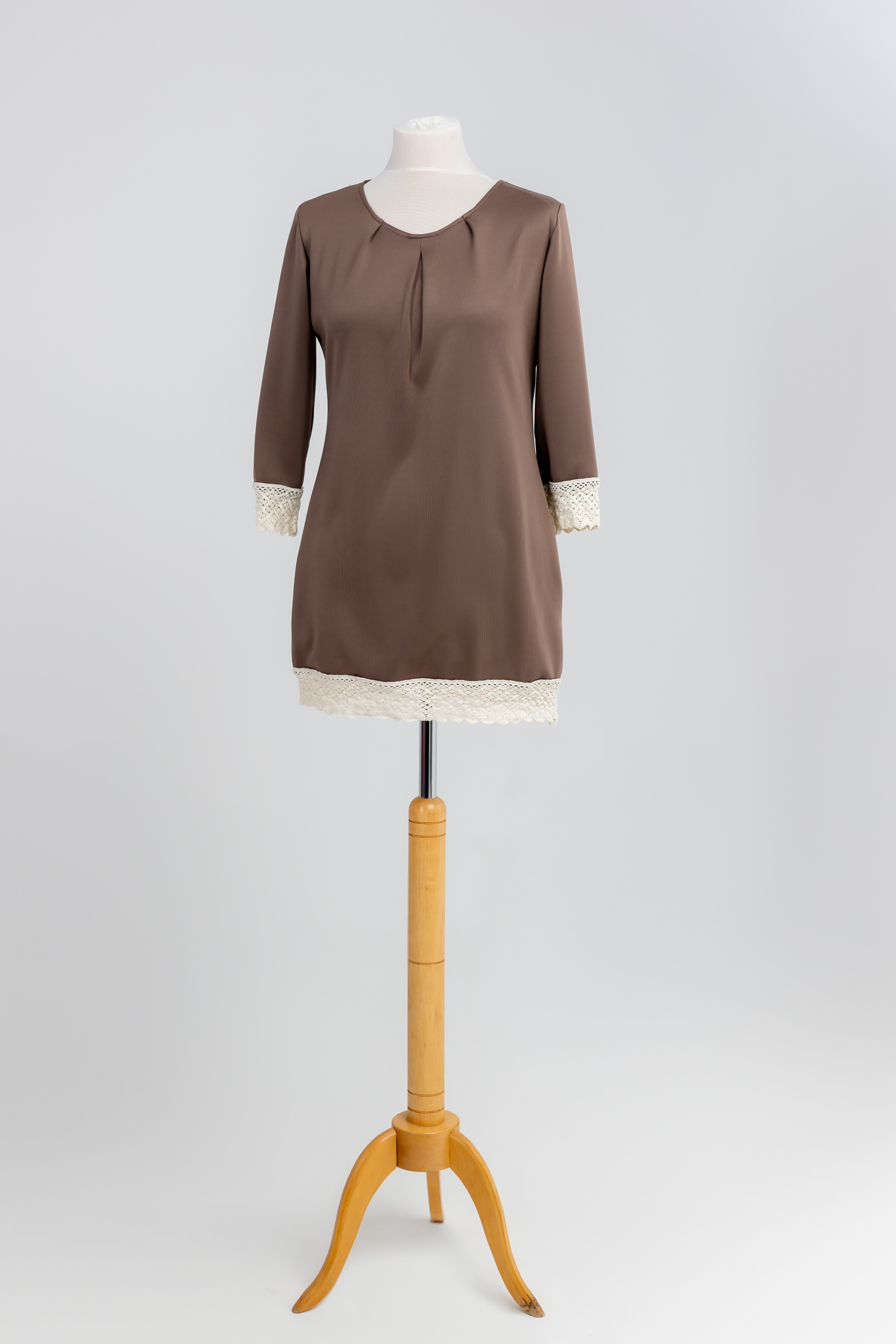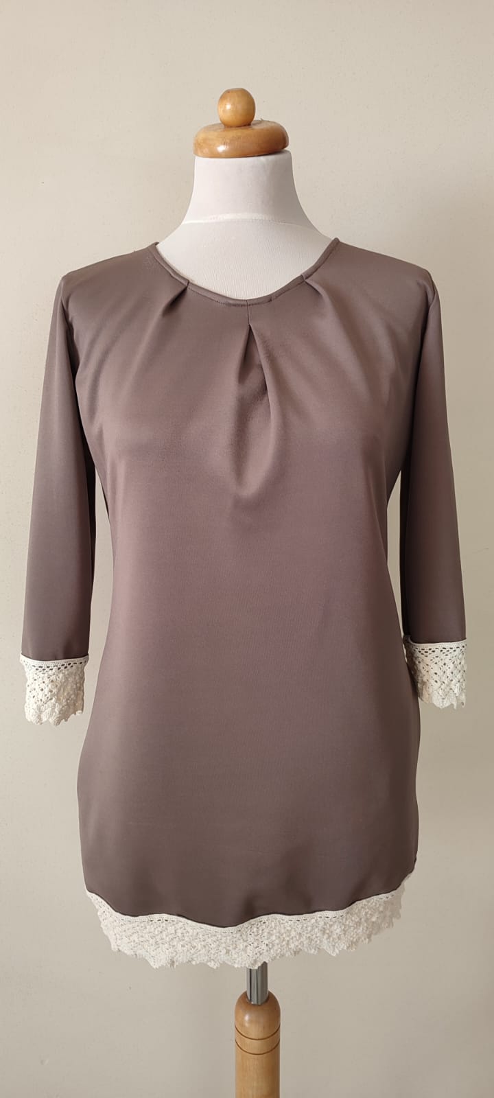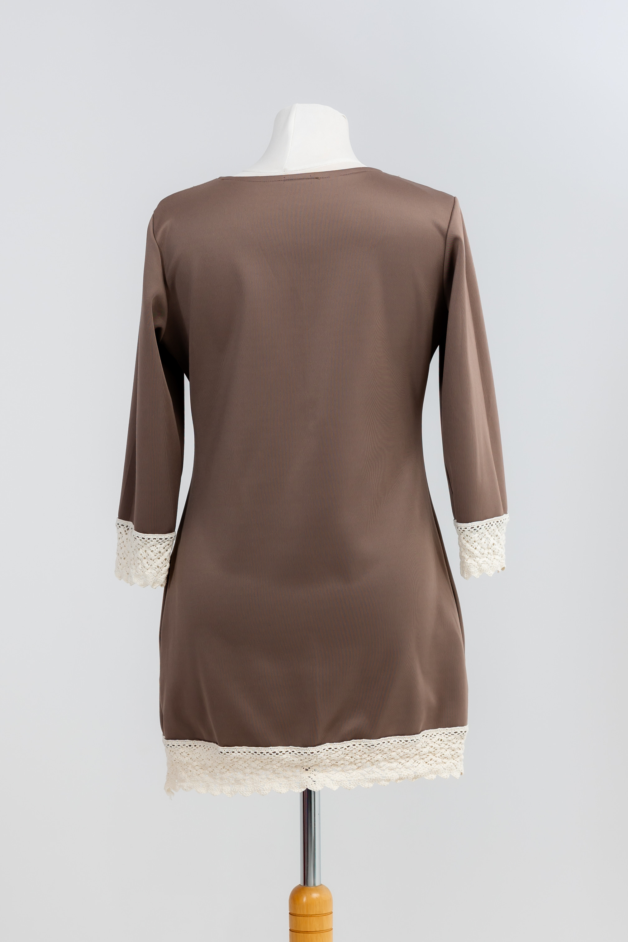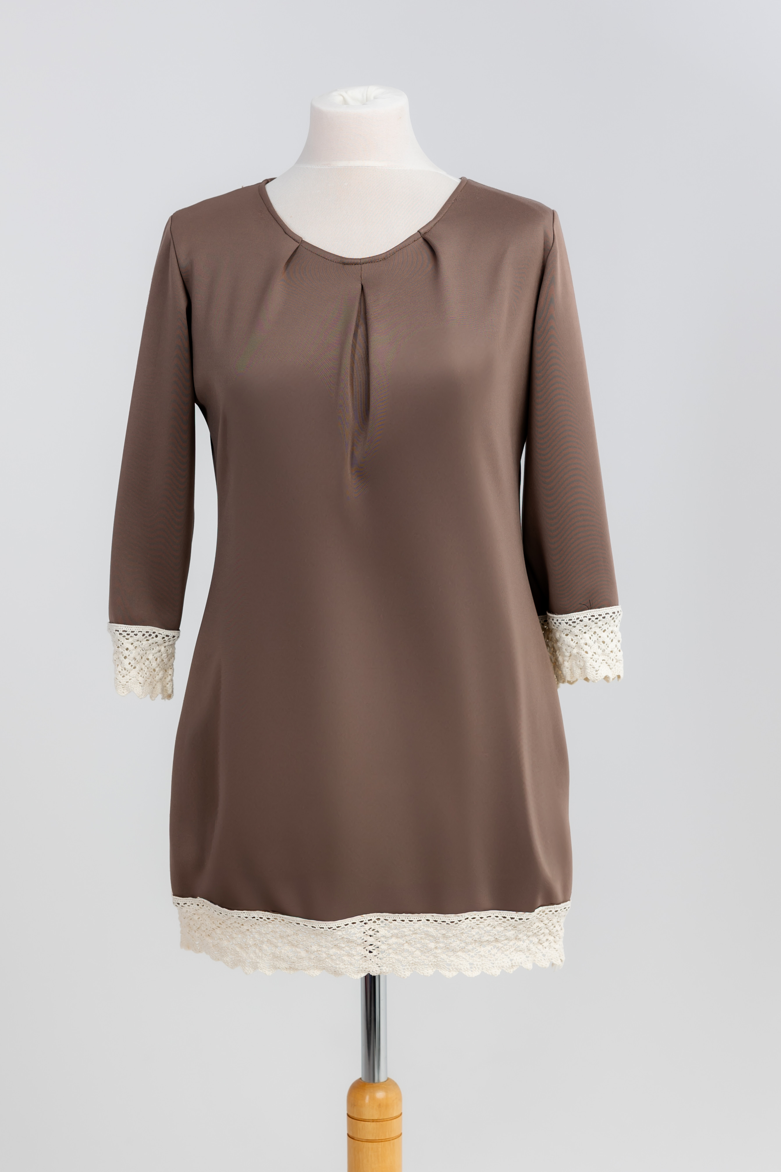 Szukasz ubrania, które jest wygodne jak ulubiony T-shirt, ale eleganckie jak sukienka? Ta tunika jest odpowiedzią. Szlachetny kolor cappuccino (ciepły beż) jest niezwykle uniwersalny, a luźniejszy fason maskuje i gwarantuje swobodę przez cały dzień. Koronkowy detal dodaje jej subtelności i unika uroku.